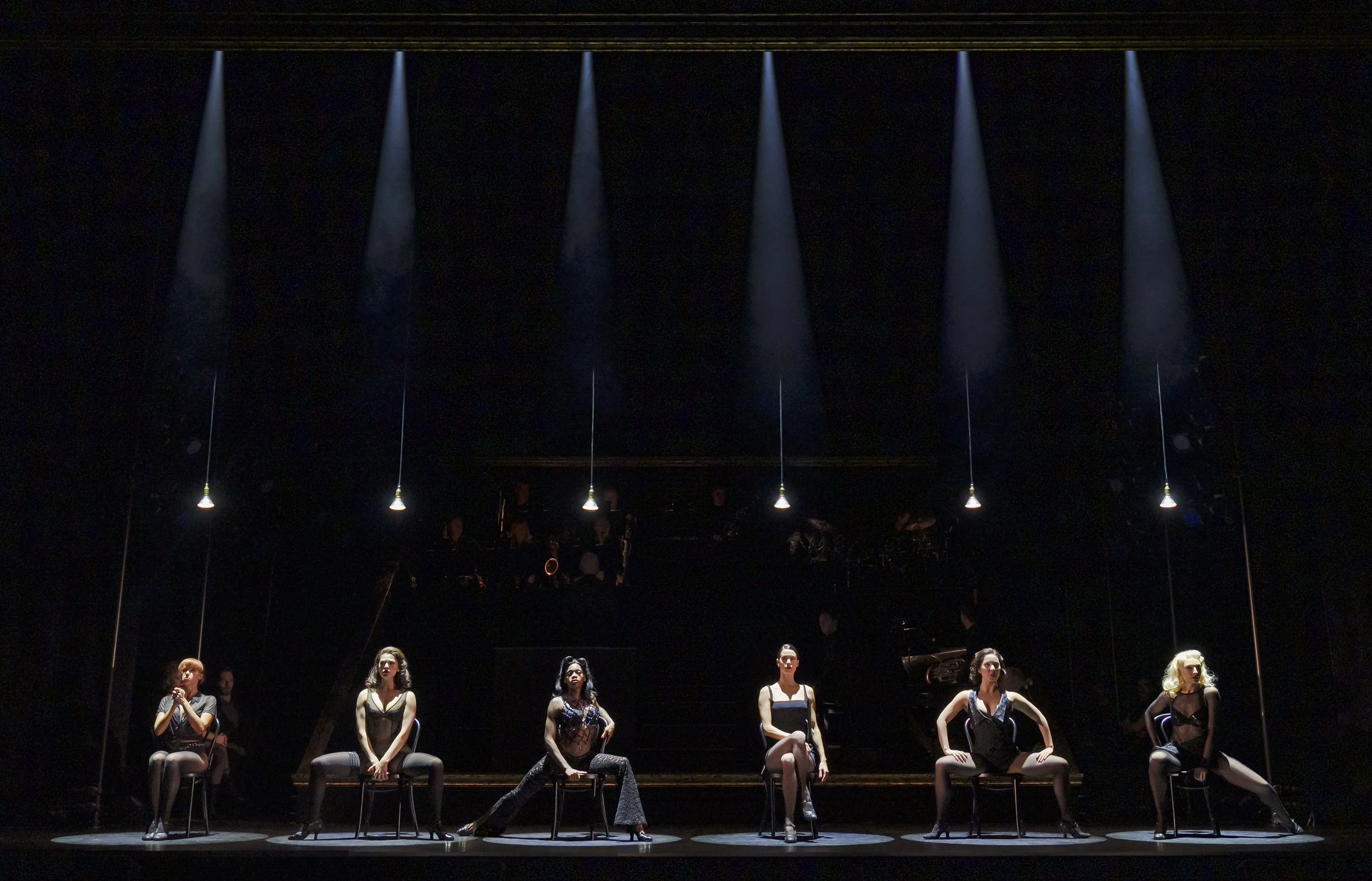 William Ivey Long’s costume design may be monochromatic, but within the all-black palette, each piece is intricately detailed and radiates the sultry, seductive energy that defines Chicago
